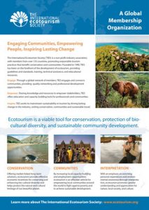 The International Ecotourism Society (TIES) is a nonprofit organization dedicated to promoting ecotourism. Founded in 1990, TIES has been on the forefront of the development of ecotourism, providing guidelines and standards, training, technical assistance, and educational resources. TIES’ global network of ecotourism professionals and travelers is leading the efforts to make tourism a viable tool for conservation, protection of bio-cultural diversity, and sustainable community development.