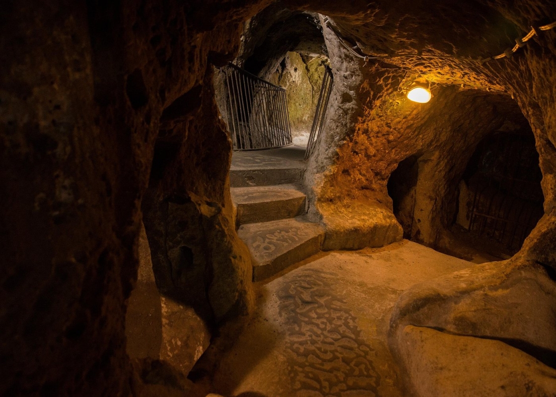 Our second stop will be Derinkuyu Underground City which biggest, largest and deepest underground city of Cappadocia. Derinkuyu Underground City has 8 level at the under of ground. You will see different sections on each level (kitchen, sitting room, restroom, tombs, stable, missionary school etc.)… Your guide explain informations about levels and formations.